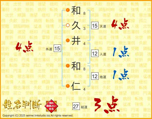 和(8画)久(3画)井(4画) 和(8画)仁(4画)