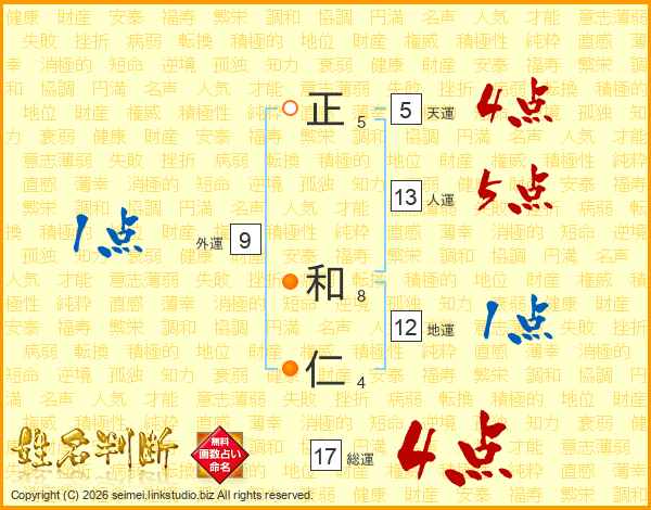 正和仁さんの人運は13画の5点!