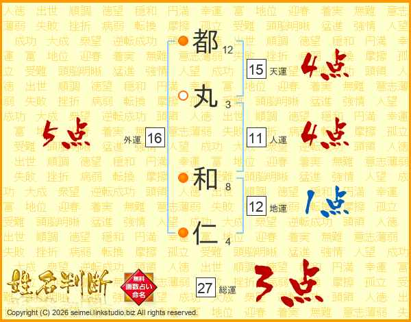 都丸和仁さんの人運は11画の4点!