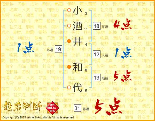 小(3画)酒(11画)井(4画) 和(8画)代(5画)