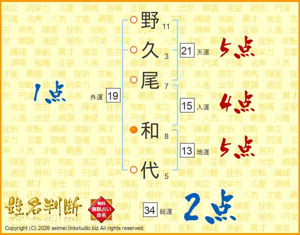 野久尾和代さんの天運は21画の5点!