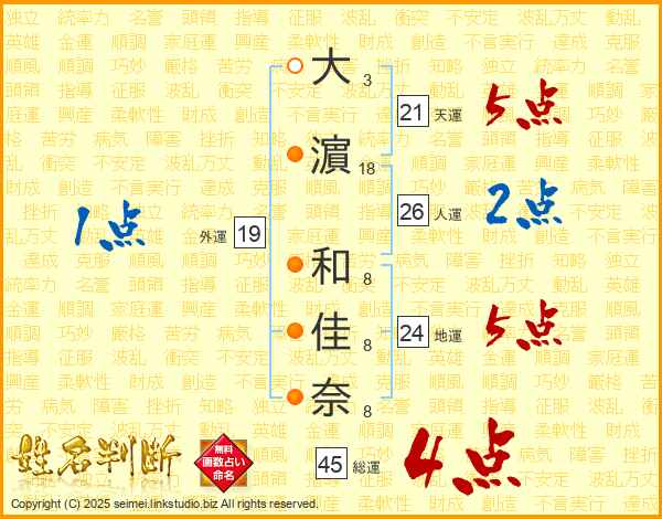 大(3画)濵(18画) 和(8画)佳(8画)奈(8画)