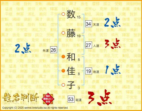 数藤和佳子さんの人運は27画の3点!