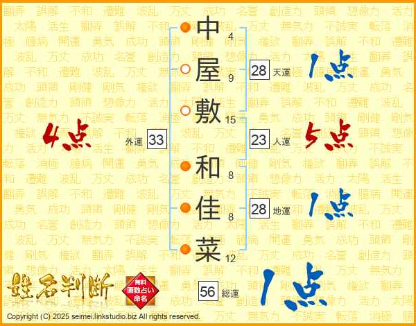 中屋敷和佳菜さんの外運は33画の4点!
