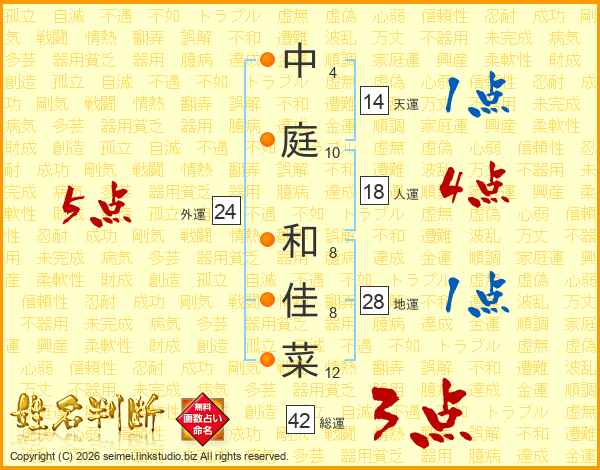 中庭和佳菜さんの天運は14画の1点!