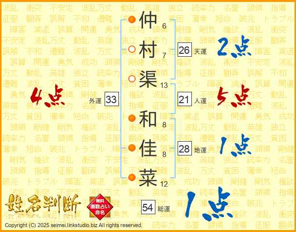 仲村渠和佳菜さんの天運は26画の2点!