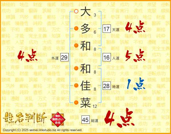 大多和和佳菜さんの天運は17画の4点!