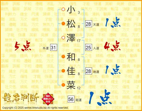 小松澤和佳菜さんの人運は25画の4点!