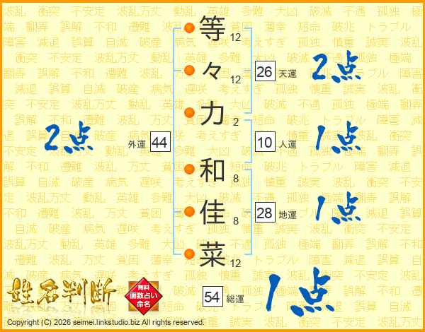 等々力和佳菜さんの天運は26画の2点!