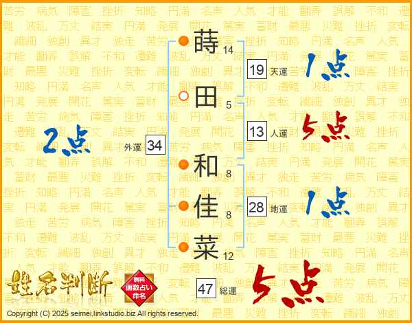 蒔田和佳菜さんの総運は47画の5点!