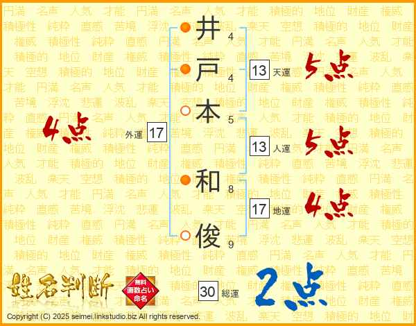井(4画)戸(4画)本(5画) 和(8画)俊(9画)