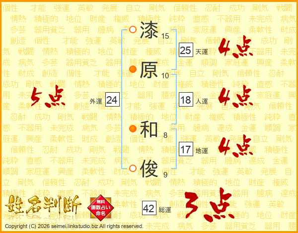 漆原和俊さんの天運は25画の4点!