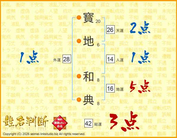 寳地和典さんの天運は26画の2点!