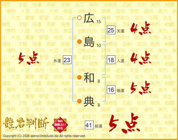 広島和典さんの総運は41画の5点!