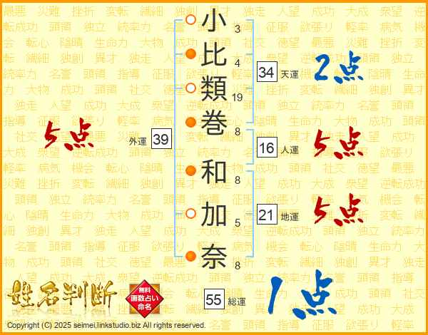 小比類巻和加奈さんの総運は55画の1点!