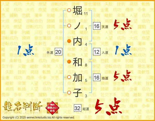 堀ノ内和加子さんの総運は32画の5点!