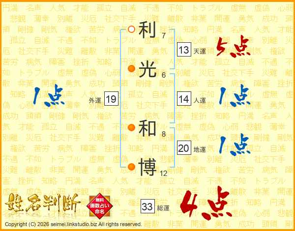 利光和博さんの総運は33画の4点!