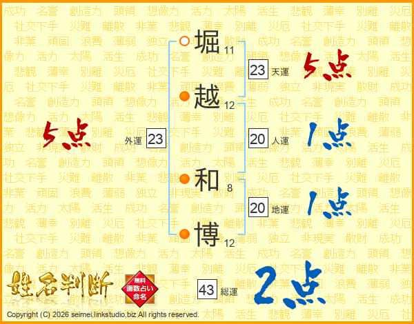 堀越和博さんの天運は23画の5点!