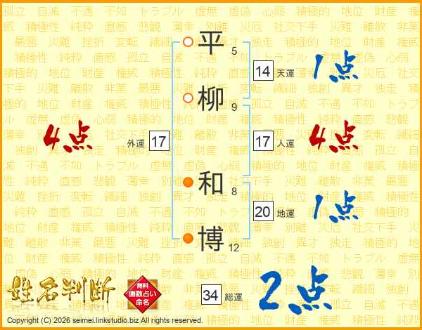 平柳和博さんの総運は34画の2点!