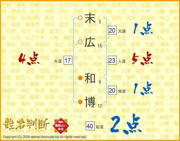 末(5画)広(15画) 和(8画)博(12画)