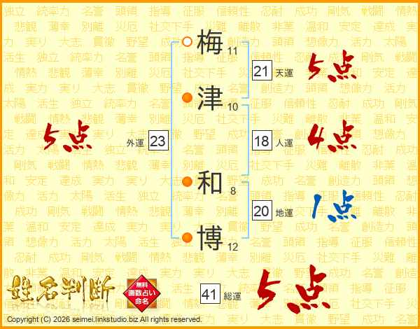 梅(11画)津(10画) 和(8画)博(12画)