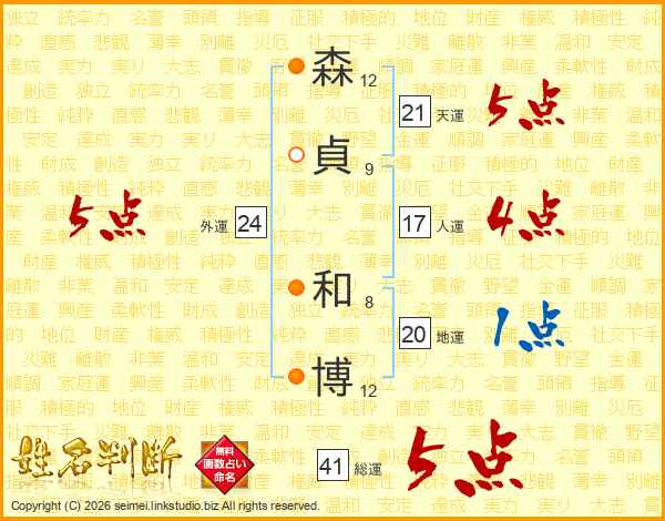 森貞和博さんの天運は21画の5点!