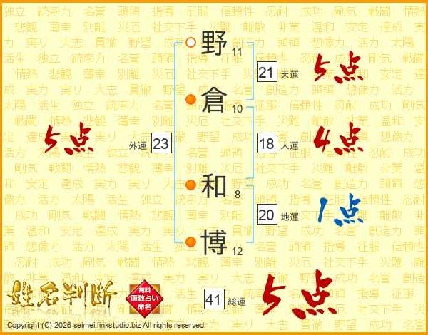 野倉和博さんの天運は21画の5点!