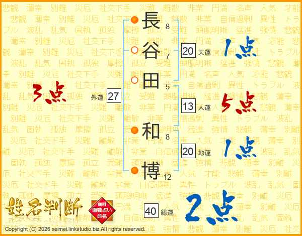 長谷田和博さんの人運は13画の5点!