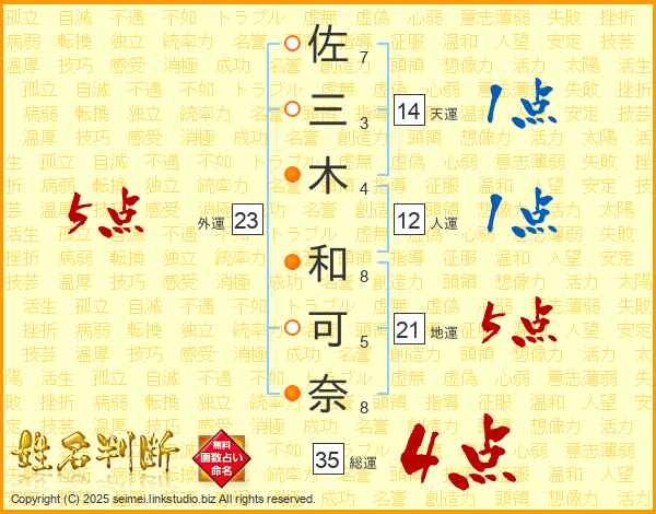 佐三木和可奈さんの総運は35画の4点!