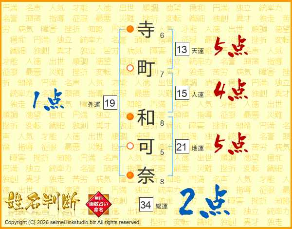 寺町和可奈さんの天運は13画の5点!