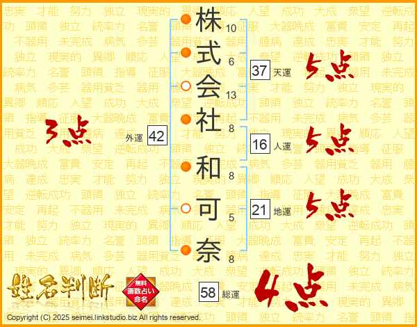 株(10画)式(6画)会(13画)社(8画) 和(8画)可(5画)奈(8画)