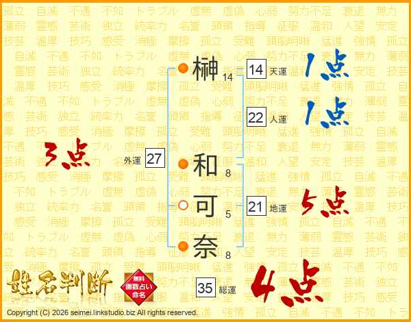 榊和可奈さんの総運は35画の4点!
