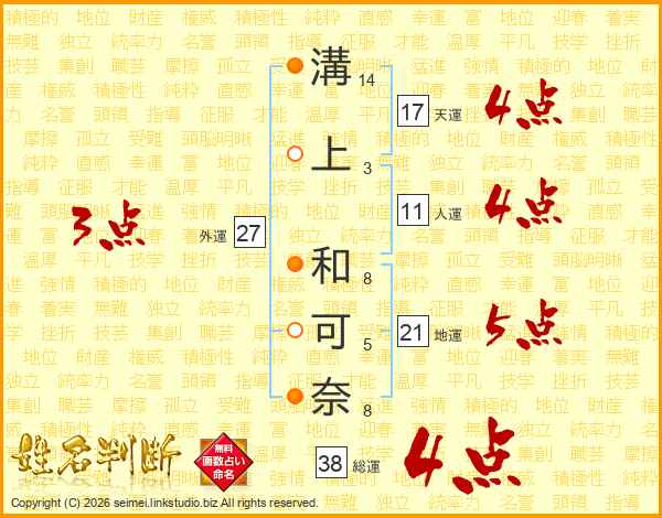 溝上和可奈さんの総運は38画の4点!