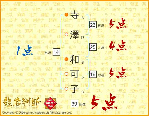 寺澤和可子さんの総運は39画の5点!