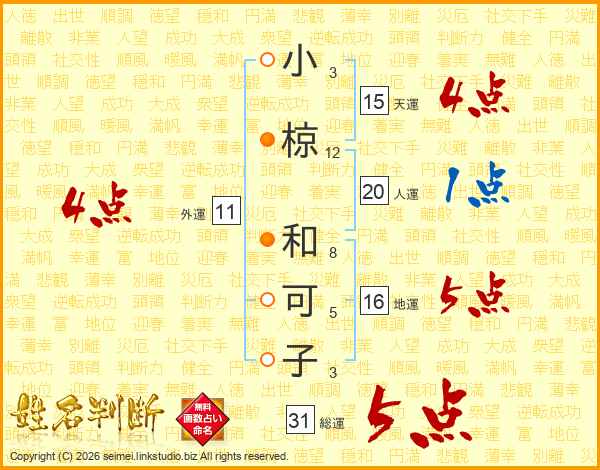 小椋和可子さんの外運は11画の4点!
