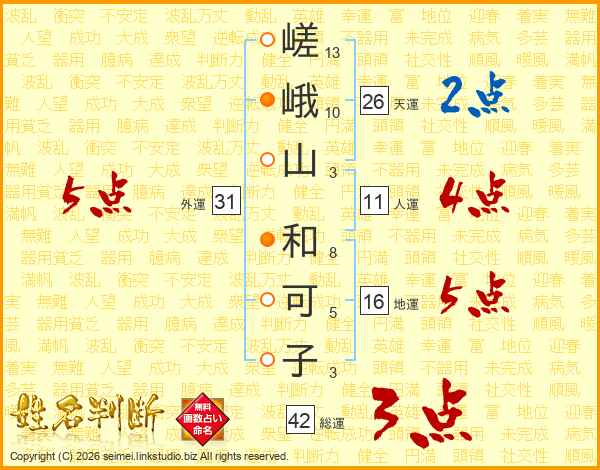 嵯峨山和可子さんの天運は26画の2点!