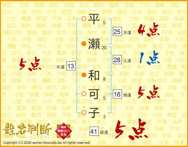 平瀬和可子さんの総運は41画の5点!