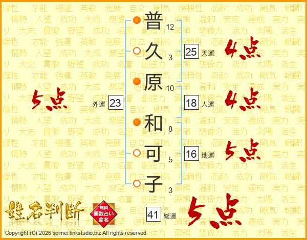 普久原和可子さんの総運は41画の5点!