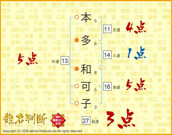 本多和可子さんの外運は13画の5点!
