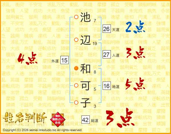 池辺和可子さんの人運は27画の3点!