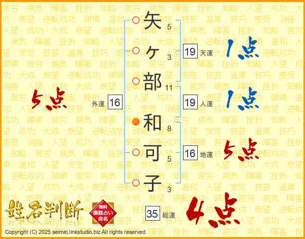 矢ヶ部和可子さんの外運は16画の5点!