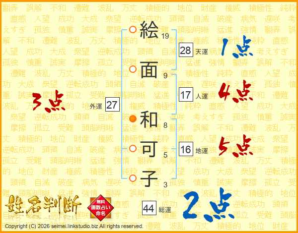 絵面和可子さんの天運は28画の1点!