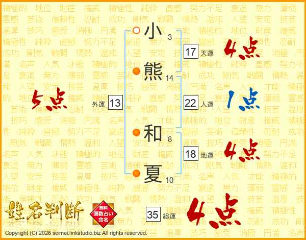 小熊和夏さんの総運は35画の4点!