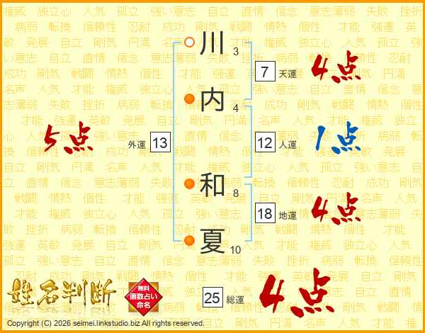 川内和夏さんの総運は25画の4点!