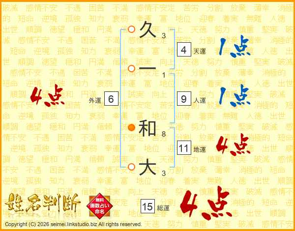久一和大さんの総運は15画の4点!