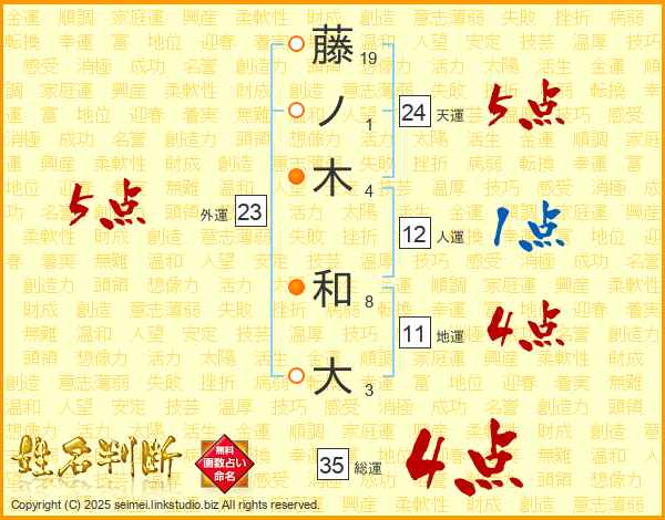 藤(19画)ノ(1画)木(4画) 和(8画)大(3画)