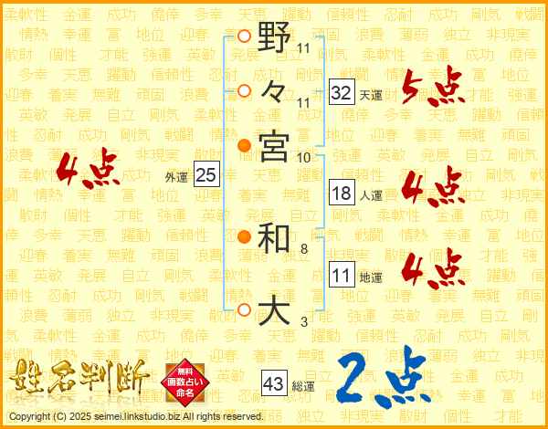 野々宮和大さんの総運は43画の2点!