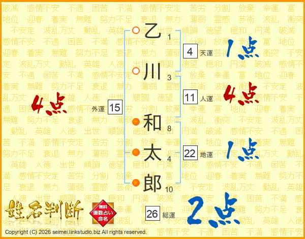 乙川和太郎さんの人運は11画の4点!