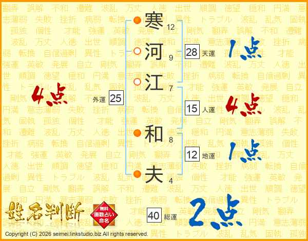 寒河江和夫さんの総運は40画の2点!