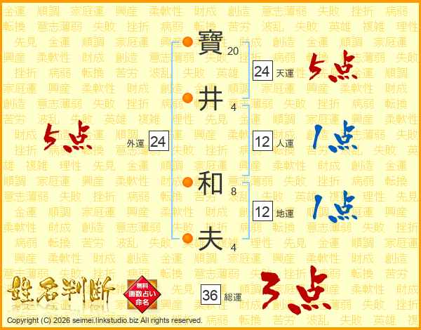 寶(20画)井(4画) 和(8画)夫(4画)